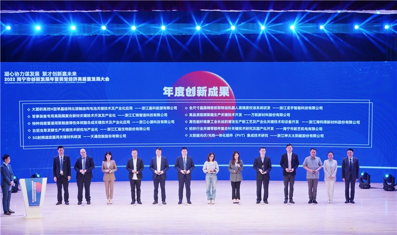 為牢牢把握長三角一體化發(fā)展大機(jī)遇,深入實(shí)施創(chuàng)新驅(qū)動戰(zhàn)略,加快建設(shè)杭州灣北翼科創(chuàng)樞紐,5月21日下午,“凝心協(xié)力謀發(fā)展 聚才創(chuàng)新贏未來”2022海寧市創(chuàng)新發(fā)展年暨民營經(jīng)濟(jì)高質(zhì)量發(fā)展大會召開,進(jìn)一步提振企業(yè)信心,全力打贏“騰籠換鳥、鳳凰涅槃”攻堅(jiān)戰(zhàn),推動海寧市工業(yè)經(jīng)濟(jì)高質(zhì)量發(fā)展。市委書記曹國良出席會議并講話。會上對一批年度創(chuàng)新集體和個(gè)人進(jìn)行了表彰,天通榮獲多項(xiàng)榮譽(yù)。
